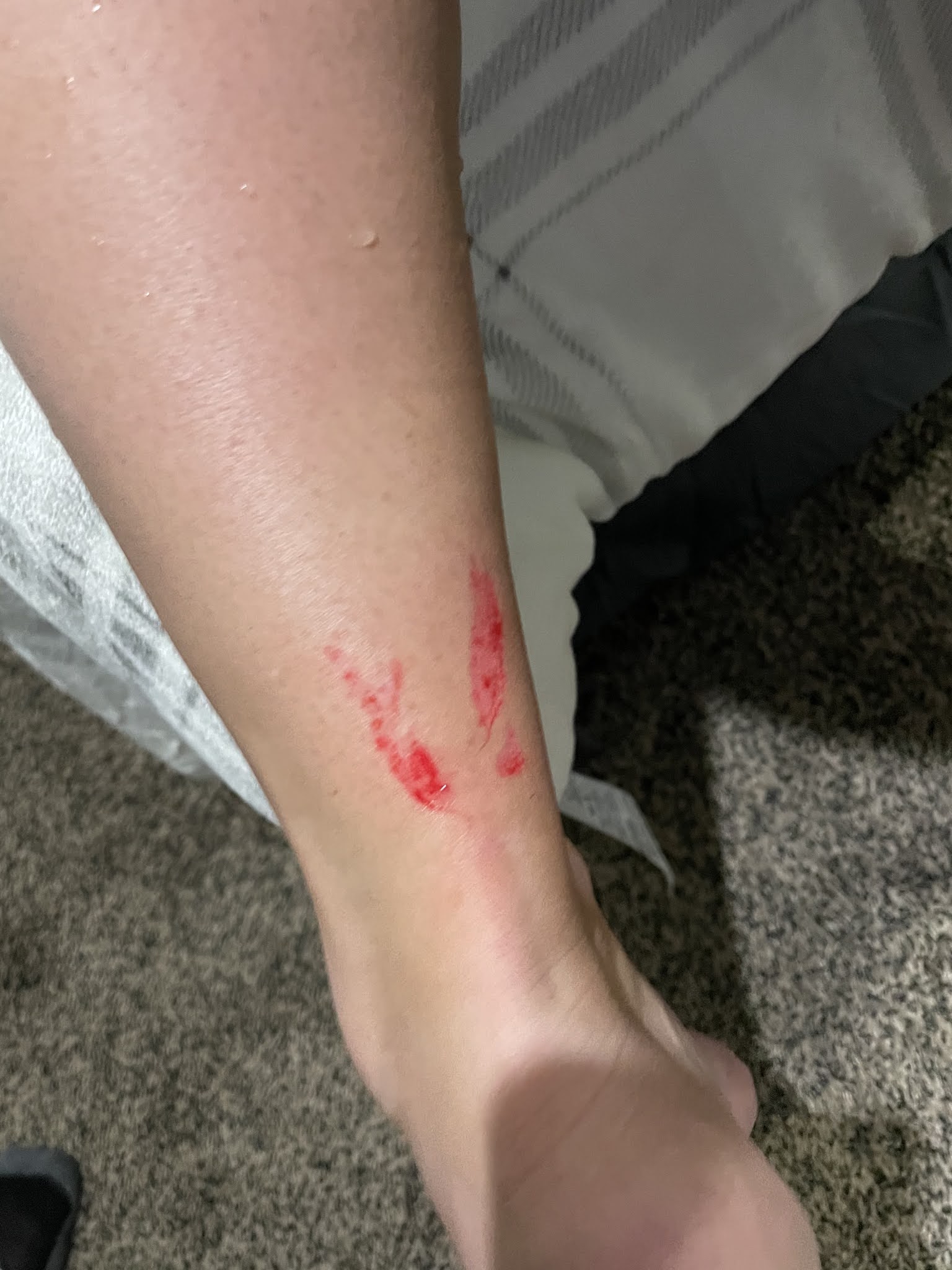YIKES AGAIN it doesn't even look good at all! My poor leg! No skin left!